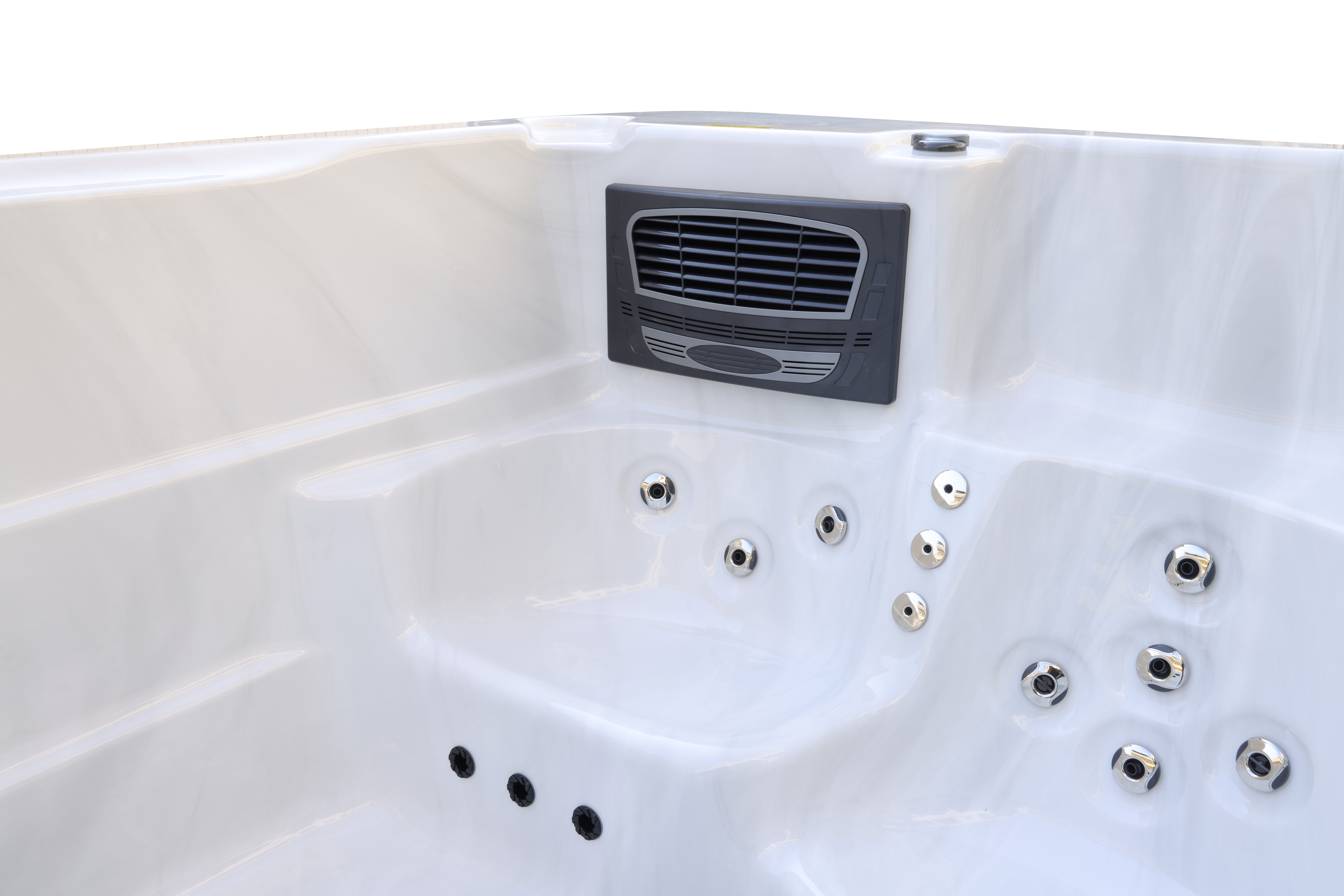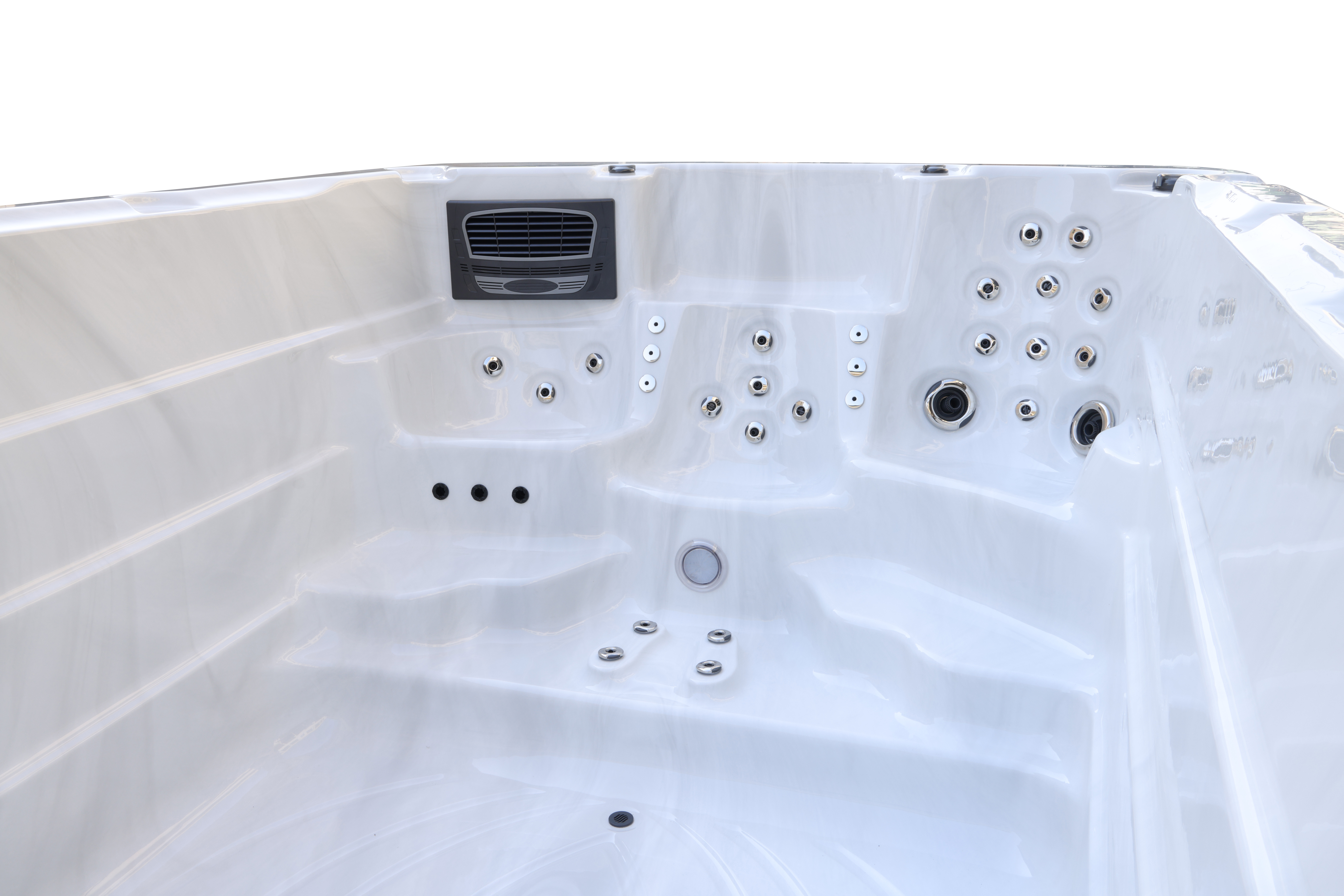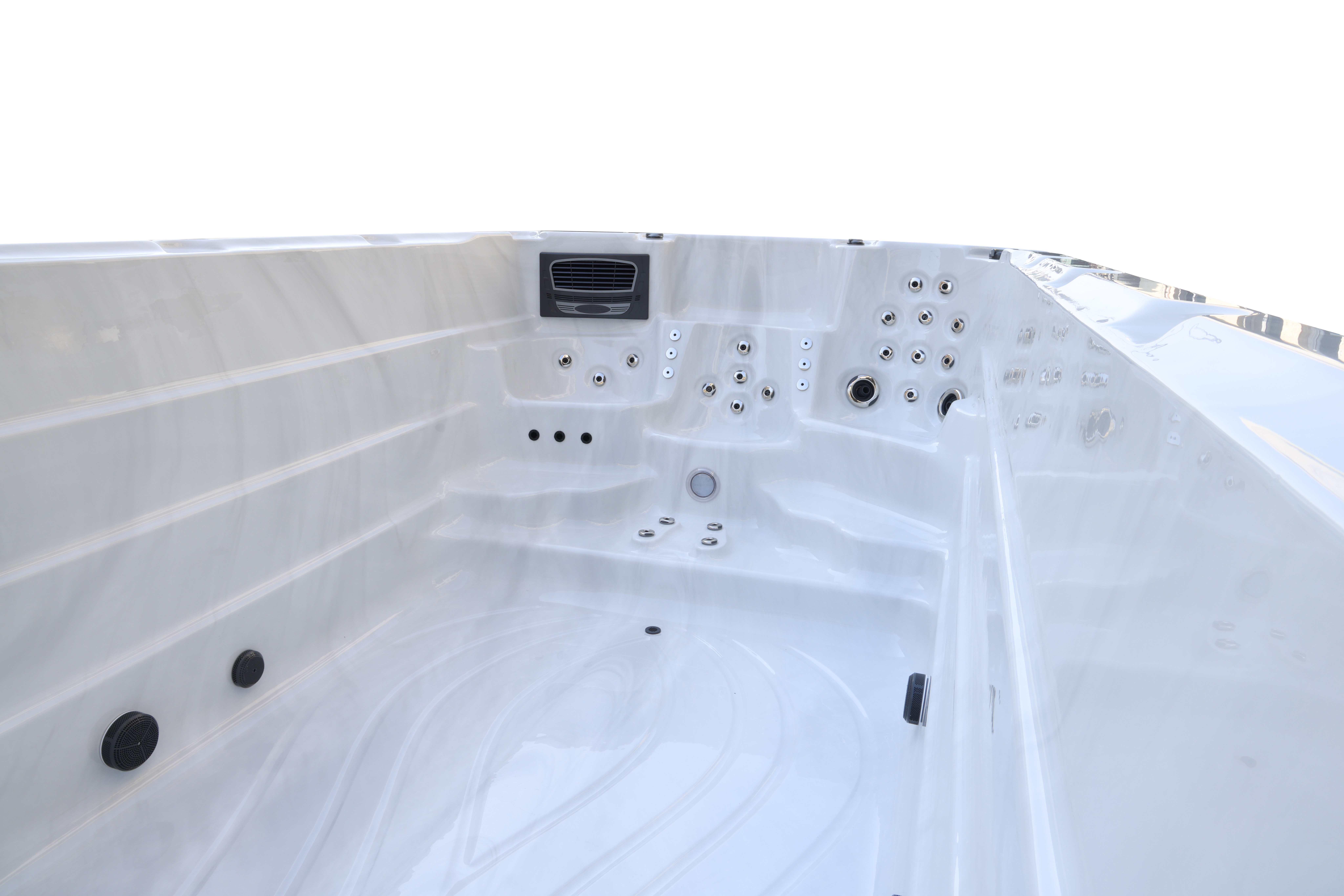 Уникальная система с четырьмя водяными насосами мощностью 2,2 кВт каждый и 37 форсунками обеспечивает интенсивный многоуровневый массаж. Эта конструкция гарантирует эффективное воздействие на различные группы мышц и глубокую релаксацию.