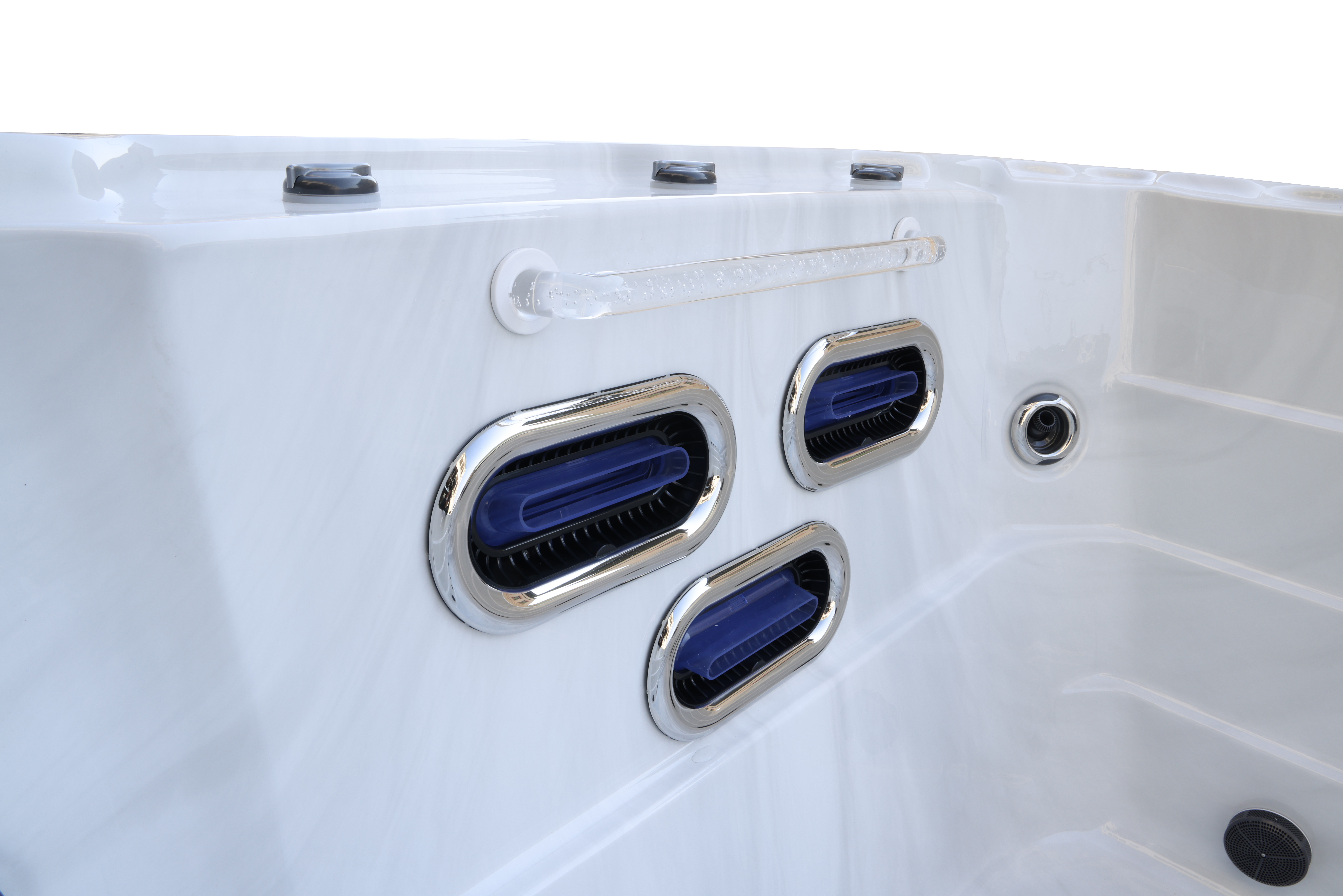 Прозрачный поручень, изготовленный из пищевого пластика, обеспечивает повышенную безопасность и удобство использования, дополняя концепцию первоклассного спа-отдыха.